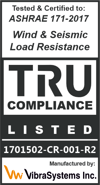 Vibrasystems Inc seismic certified spring mounts undergo rigorous testing to ensure compliance with seismic standards and codes. These isolators were subject to shake table testing, dynamic analysis, and performance verification to assess their ability to withstand seismic forces (results of this testing are available ipon request).